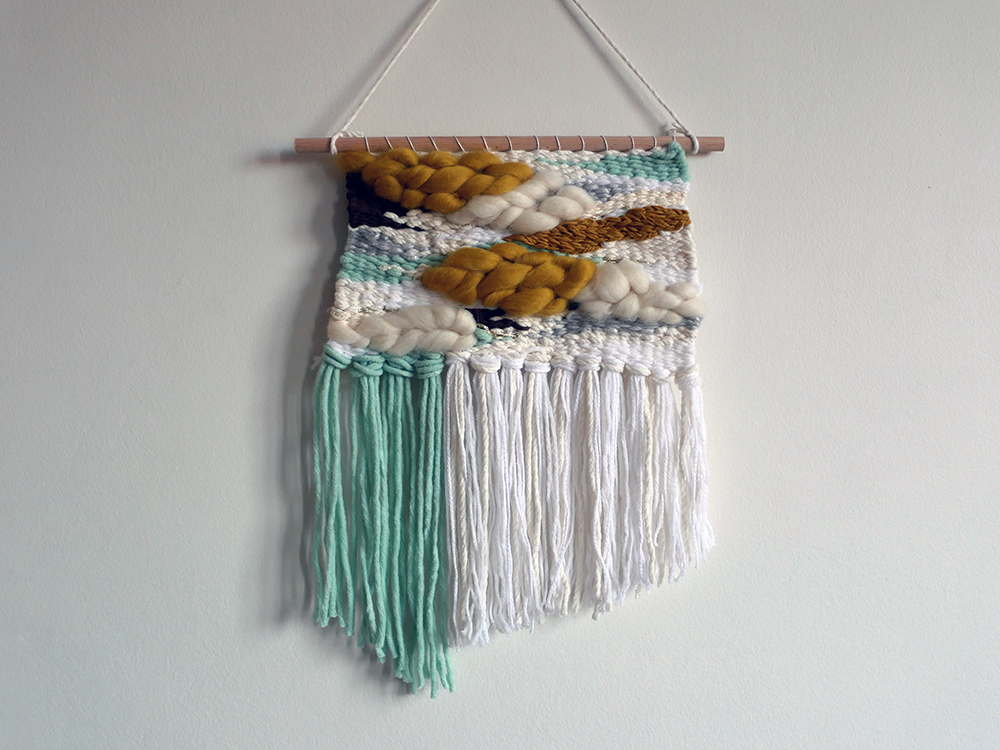 Je fournis la laine nécessaire à la réalisation du tissage pendant l’atelier. A la fin, chaque « élève » repart avec le tissage qu’il a créé, prêt à être accroché, ainsi qu’avec son « kit » (métier à tisser, peigne, navette et aiguille).