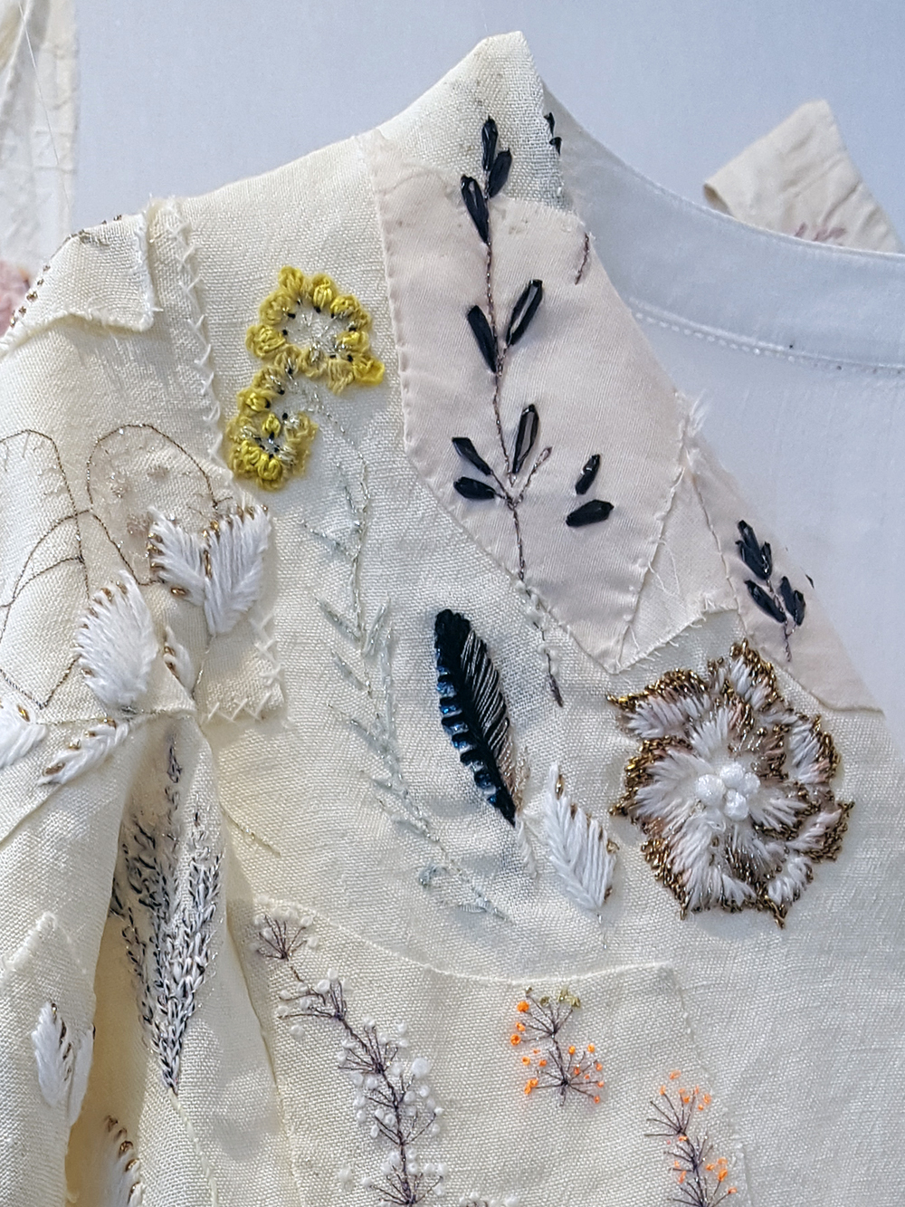 C’est en effet très beau, avec une technique de broderies appliquées sur des vêtements aux tissus originaux et à la coupe sortant de prêt à porter. Ça n’est pas immensément savant, mais c’est très talentueux, ce qui vaut beaucoup plus à mes yeux. Merci pour cette découverte.