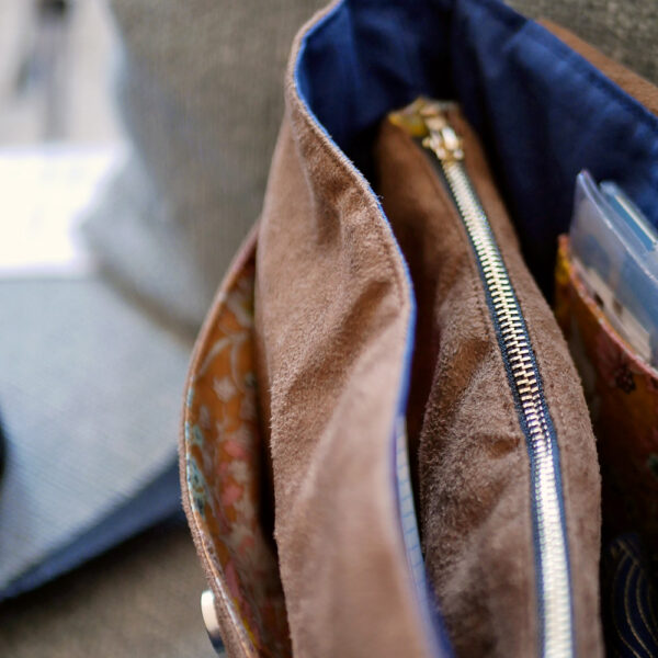 Le rabat à empiècements est un élément phare de ce sac, et je suis vraiment fière de moi d’avoir su le réaliser. C’était la première fois que je dessinais un modèle à coudre, avec toute la logique de conception à avoir, et j’ai adoré le faire ! Avec lui, Stella a un petit look rétro qui lui donne beaucoup de charme !