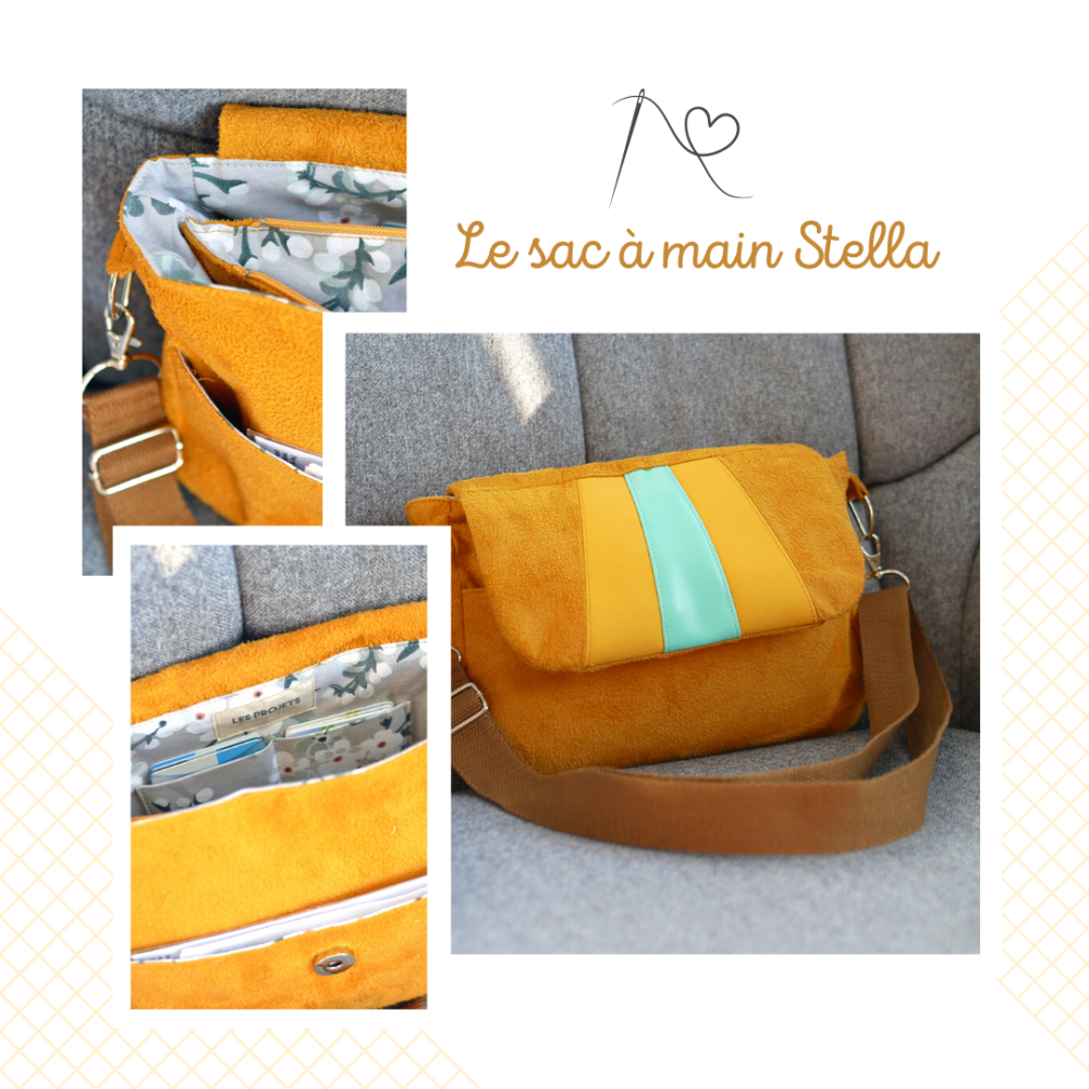 Mon sac parfait n’est ni trop grand, ni trop petit. On ne passe pas des heures à chercher ses affaires dedans. Au contraire, des poches bien agencées permettent de tout bien ranger, notamment les papiers et les cartes. Son format est forcément pratique, pour l’amener partout. Il contient l’indispensable (téléphone, porte-monnaie, clés…) mais se paie le luxe de pouvoir accueillir un livre de poche. Pratique, je vous dis ! Ce sac à main idéal, j’en ai rêvé, et finalement, je l’ai fait ! Je l’ai dessiné puis conçu numériquement, avant de le coudre à la machine. Une fois, deux fois, trois fois… On n’a jamais trop de sacs à main ! Retravaillé, affiné, soumis à des bêta-testeuses, ce sac besace parfait s’appelle Stella et il est désormais disponible sur ma boutique en ligne !