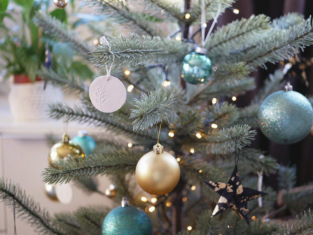 En plus de la traditionnelle guirlande lumineuse, j’ai opté pour les boules « turquoise-vert d’eau » de mon sapin de Noël 2014 et les dorées que j’utilise quasiment tous les ans. J’ai également choisi d’agrémenter mon sapin des pampilles en argile auto-durcissante réalisées l’an dernier. Et pour la nouveauté, j’ai sorti mon plioir pour faire des étoiles en origami. Je vous montre le tuto plus bas ! D’abord, quelques photos…
