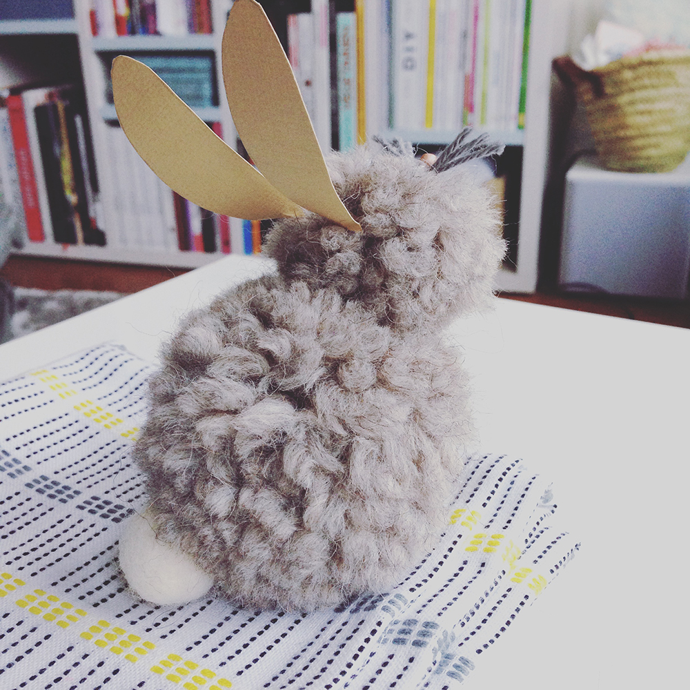 Au détour d’une déambulation virtuelle, j’ai craqué sur le lapin fait avec des pompons du blog Kidissimo, aussi cute que facile à réaliser ! A l’approche de Pâques, c’est un DIY idéal pour les enfants. Côté matériel, hormis les yeux que j’ai du acheter, j’avais déjà tout dans mon stock spécial DIY. Notamment, une chouette laine épaisse que j’utilise habituellement pour mes tissages et dont la texture est parfaite pour créer ces petits lapins tous doux !