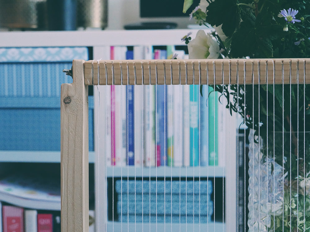 Les petits ont accueilli les fentes qui maintiennent le fil de tissage. Les grands sont sur les bords à gauche et à droite. J’ai d’ailleurs oublié de préciser que mon métier à tisser en bois XXL était démontable. C’était en effet un souhait de mon mari pour que je n’encombre pas trop l’appart (spoiler : c’est raté).
