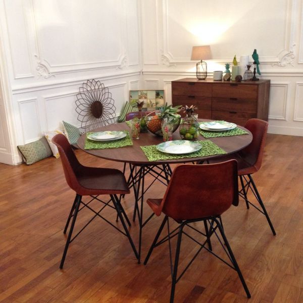 Hmm difficile d’identifier cette table, on ne voit que peu de détail. En effet, Maison du Monde, même si parfois les prix sont un peu élevés, est un magasin idéal pour trouver des idées de déco sympa pour son appartement. On le voit ici sur ces différentes photos. Après moi je jaune, j’ai du mal à accrocher.