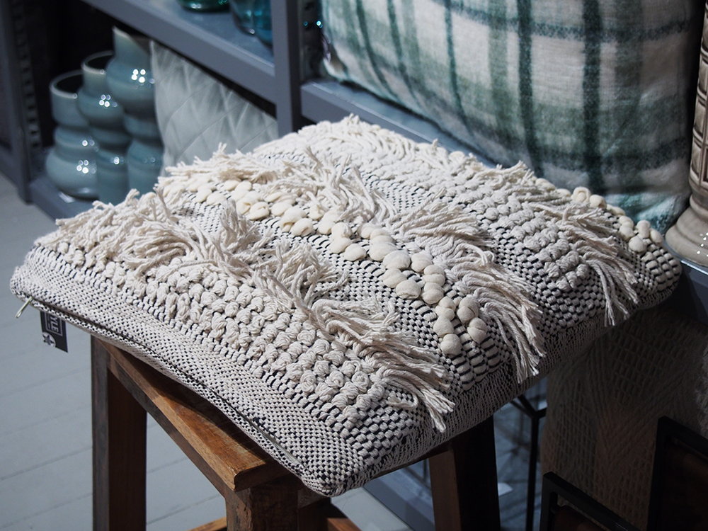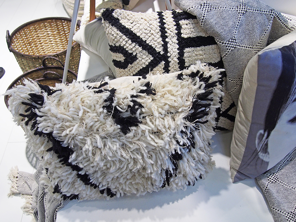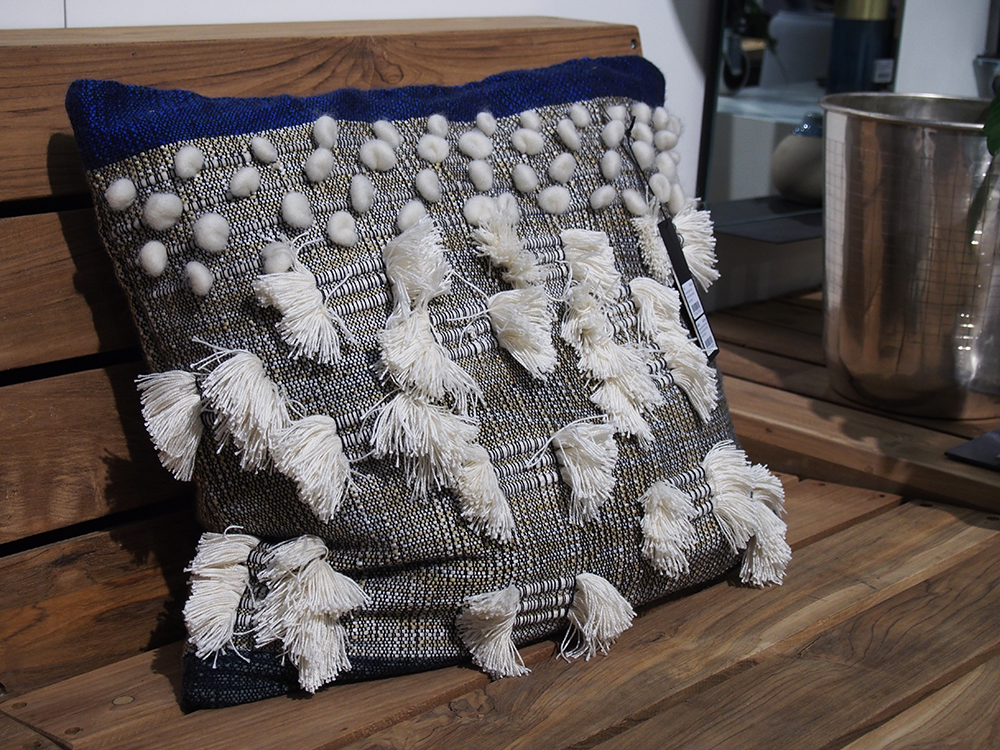 Surprise de ce salon Maison & Objet, le tissage se décline aussi largement en coussins, à grand renfort de bouclettes et autres franges. C’est tellement inspirant que mon prochain tissage sera très probablement une housse de coussin…