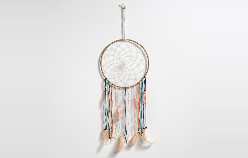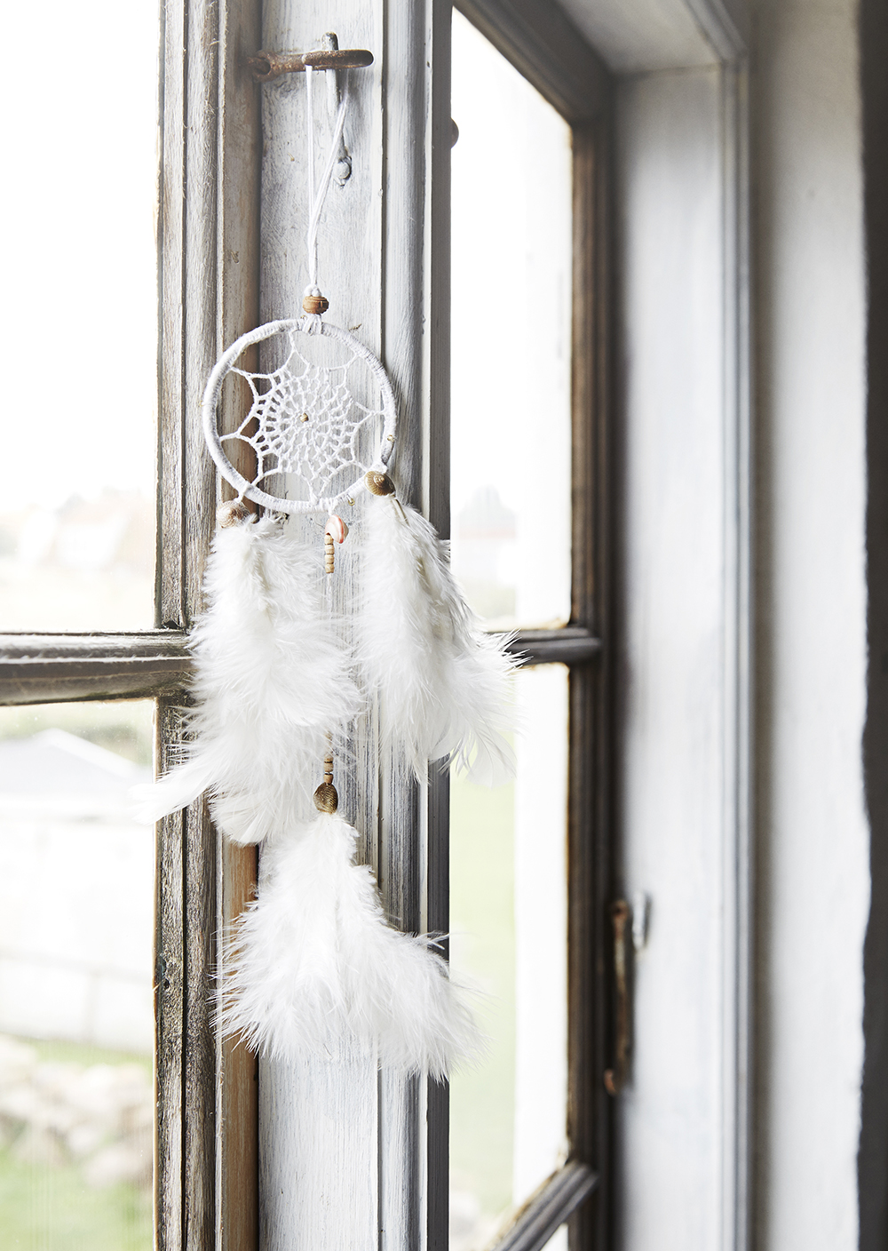 Les attrape-rêve, dreamcatchers en VO, nous viennent de la culture amérindienne. Constitués généralement d’un anneau et d’un filet disposé en une sorte de rosace, ils s’ornent dans leur version moderne de rubans, plumes et autres perles. Selon la tradition, ces objets n’ont pas de vocation déco, ce sont des capteurs de rêves. Ils retiennent les cauchemars qui sont brûlés au lever du jour par les premiers rayons du soleil. Idéalement, il faudrait donc les accrocher à proximité d’une fenêtre.